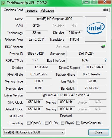 Intel HD Graphics 3000 (Sandy Bridge)