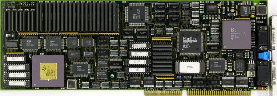 2MB VRAM + 1MB DRAM. Card have added Headland HT208 with its own memory (1MB) for VGA compatibility. Card model name is P30/R1.5.