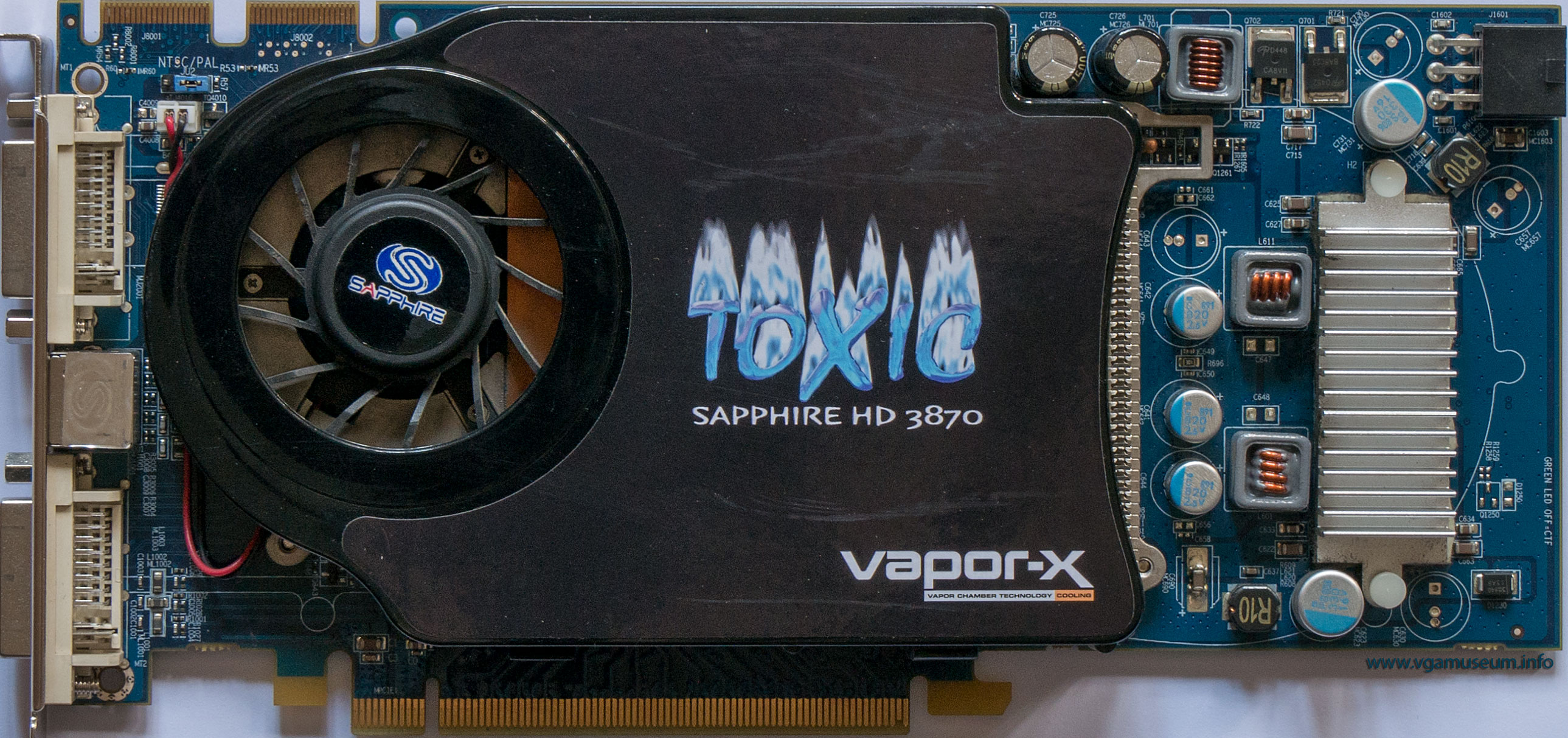 Sapphire Radeon HD 3870 512MB Toxic is overclocked edition with better one slot cooler. Core clock is 800MHz and memory 2304Mhz.