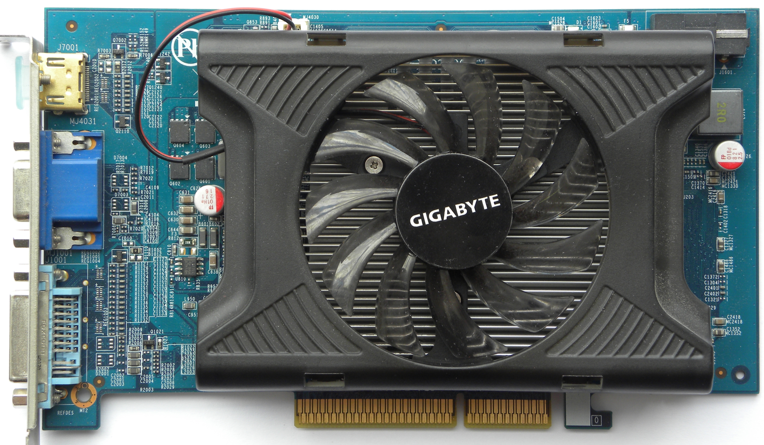 Mid-range card. Some PCI-E versions have GDDR3 VRAM. Added 8-channel audio for both HDMI and DisplayPort.