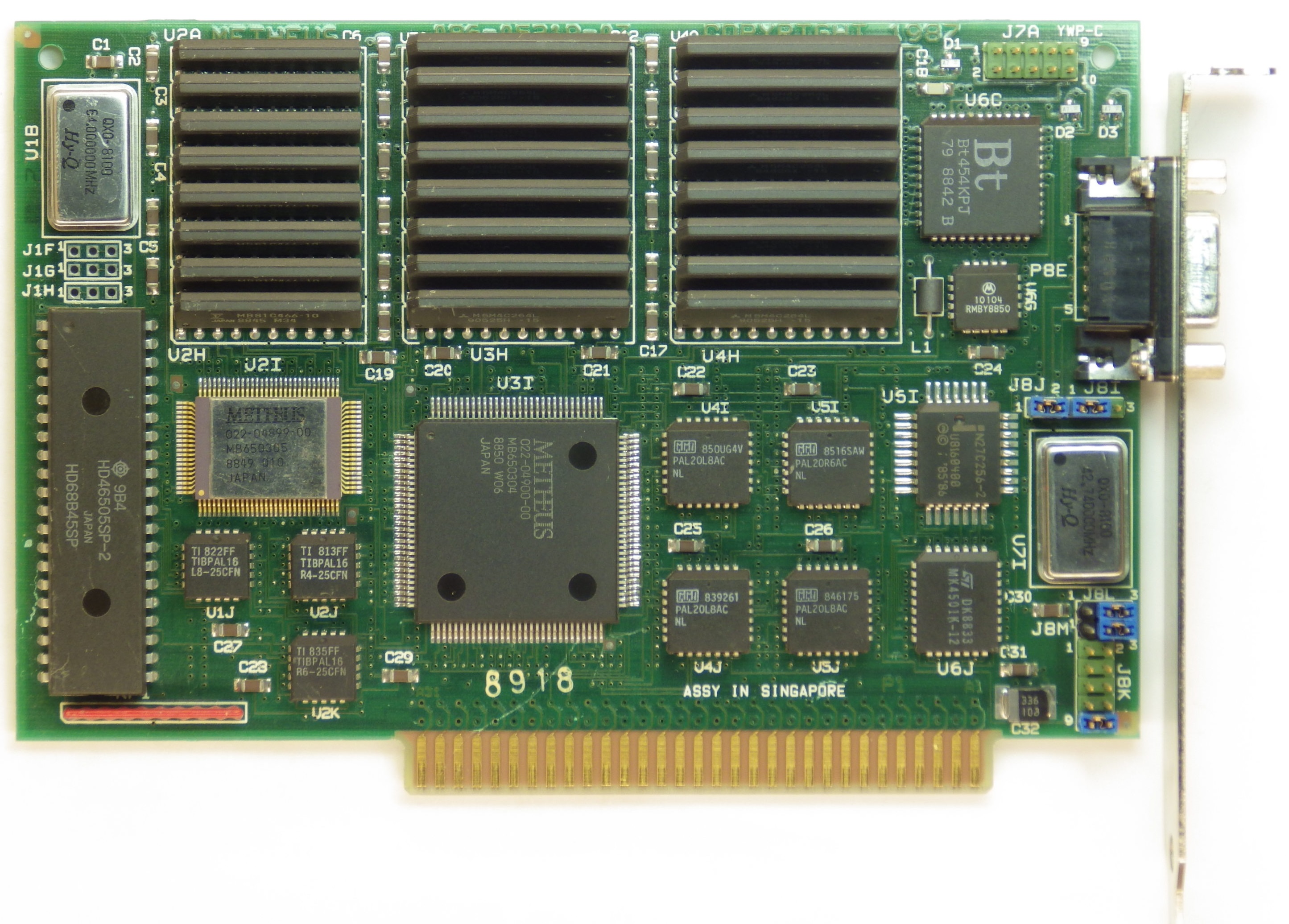 Referred to as "UGA", this card also includes a Hitachi HD68B45SP CGA chip and required a driver for advanced features. The custom Metheus chip had programable microcode.
