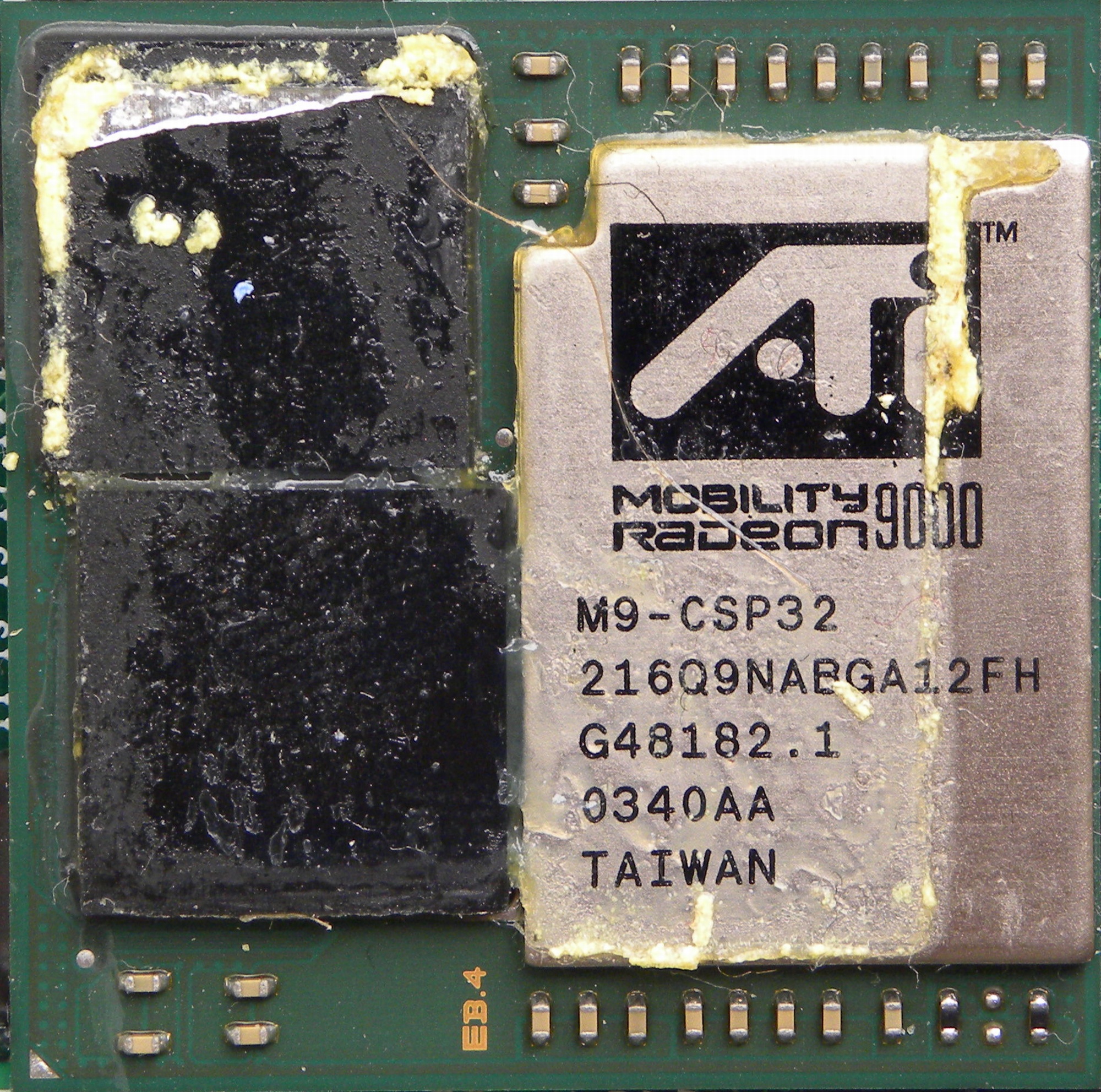 ATi M9-CSP32 64MB - Pulled from Dell Inspiron 5150. Card has only 32MB DDR 400MHz memory on BGA, another 32MB memory is located on board, thus it have 64MB VRAM.