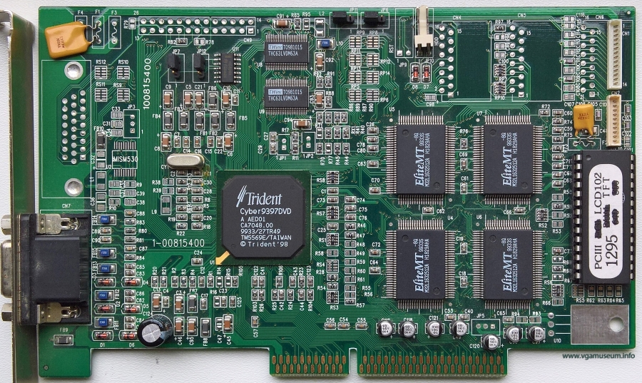Improved Cyber9397 chip with added DVD playback capabilities, support up to 8MB and 230MHz built-in RAMDAC.
