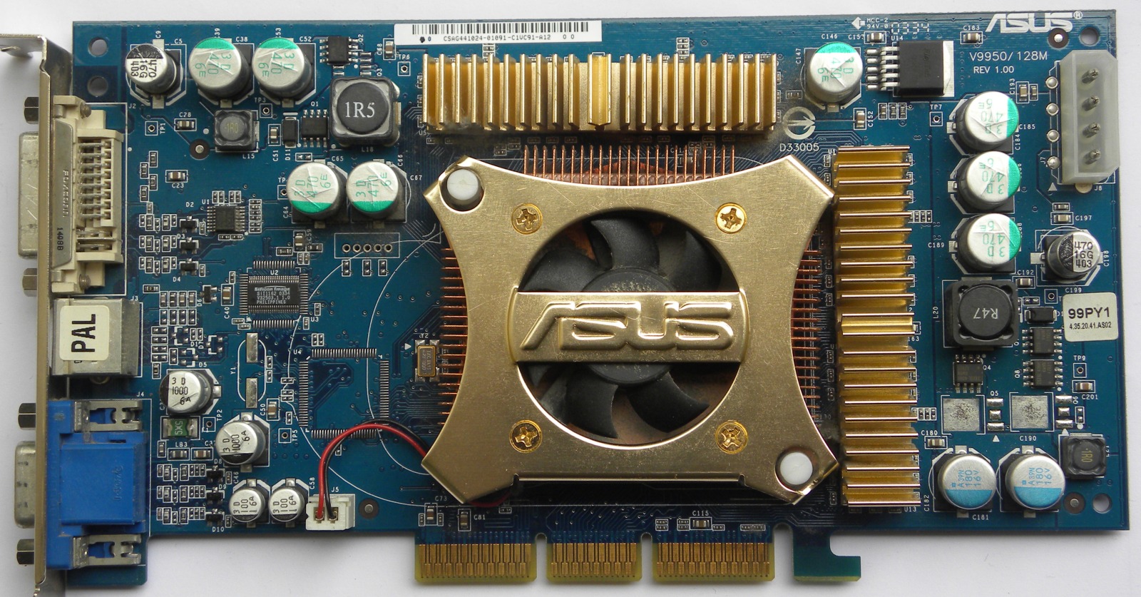Asus V9950GE/TD/128M have underclocked memory to clocks of FX 5900 XT. Only 700MHz, compared to official 850MHz.
